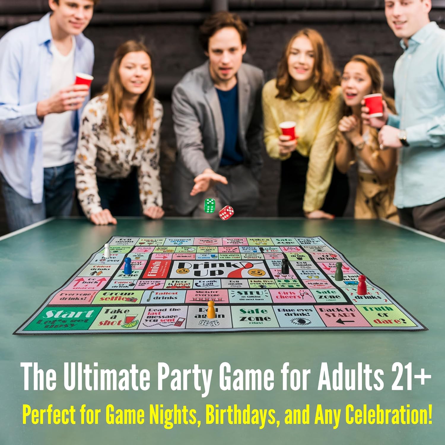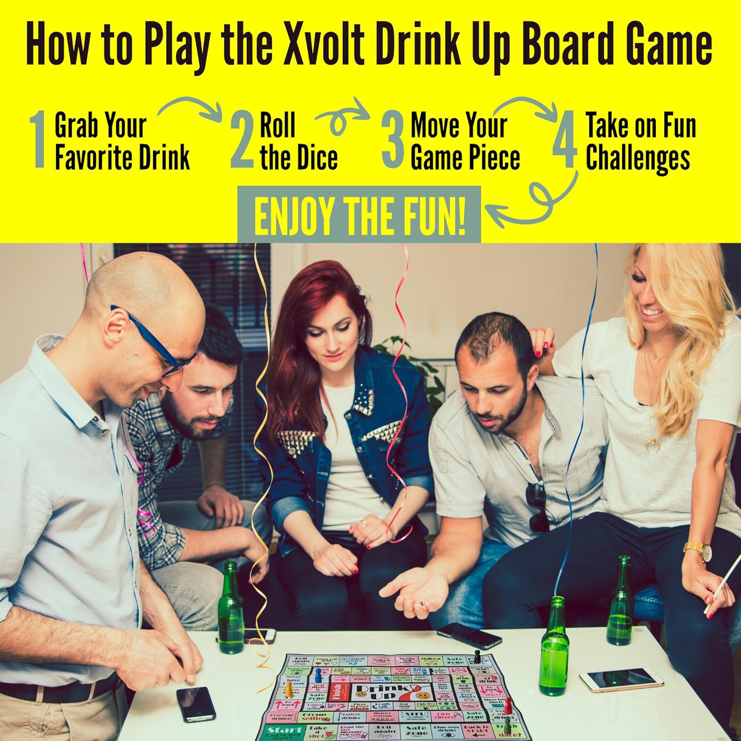 - Brings the Party to Life: Whether it's a wild bachelorette weekend, a lively birthday bash, or a cozy hangout with friends, the Xvolt Drink Up Board Game is the ultimate way to spice up any event. Specifically designed for an adult group only aged 21+, this game blends classic board game fun with funny challenges, wild dares, and lots of laughter. Get ready to turn any occasion into a tipsy adventure that will have everyone laughing and bonding all night long.